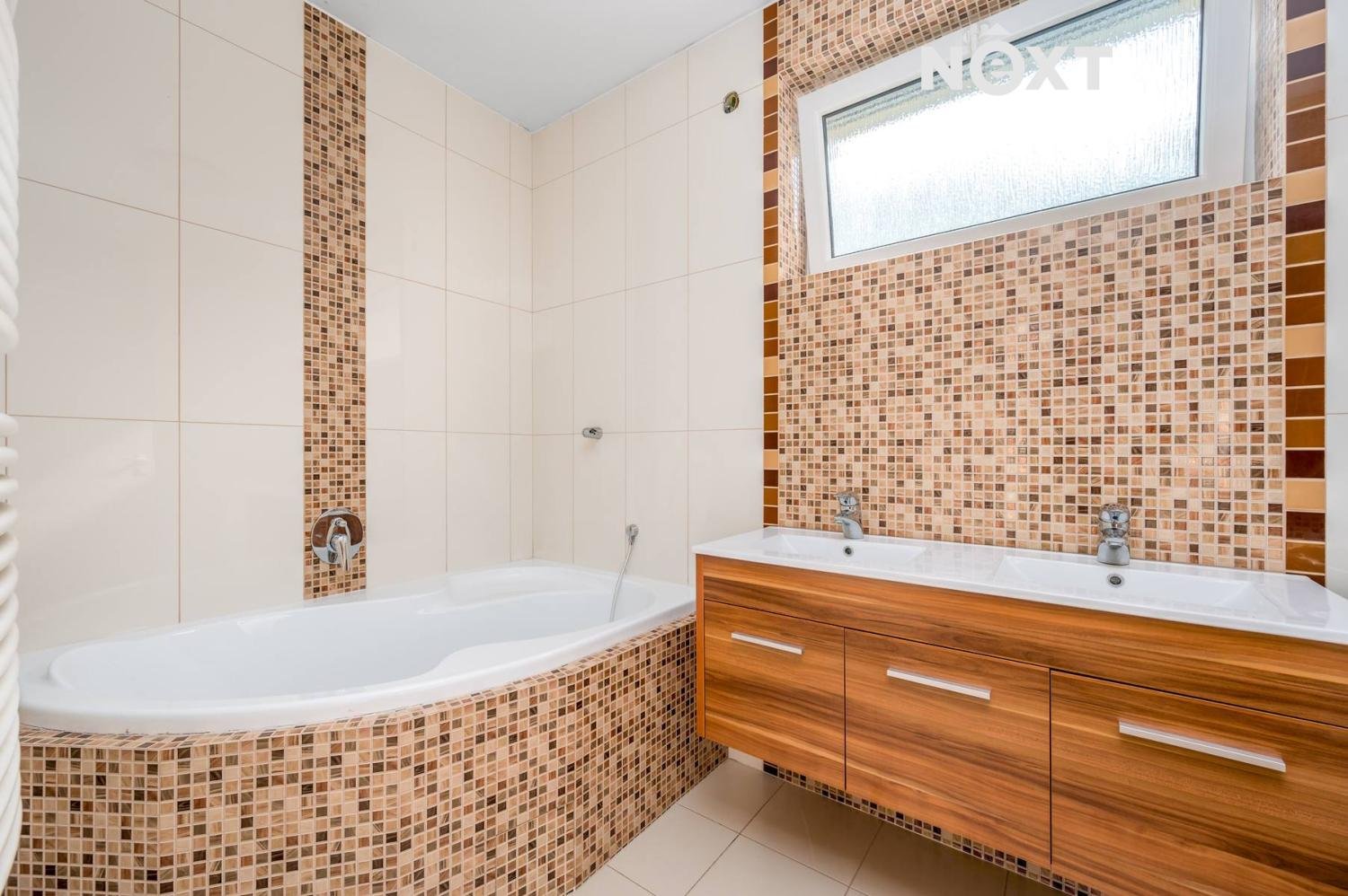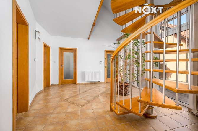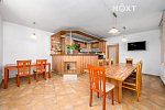 Srdcem domu je prostorná a plně vybavená kuchyně s barem v dřevěném dekoru. Kuchyň je nejen praktická, ale i esteticky příjemná, a je kompletně zařízena kvalitními spotřebiči – vestavná elektrická trouba, plynový sporák, mikrovlnná trouba, myčka, digestoř a lednice.