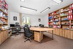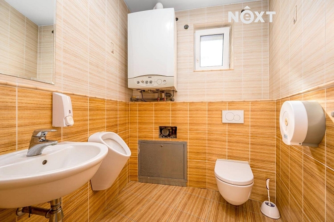V přízemí se dále nacházejí dva samostatné pokoje, ideální jako obývací pokoj nebo domácí kanceláře. V koupelně v přízemí je umístěno dvoj umyvadlo s dřevěnou skříňkou, vana a sprchový kout. Toaleta je samostatná a vybavena pisoárem.
