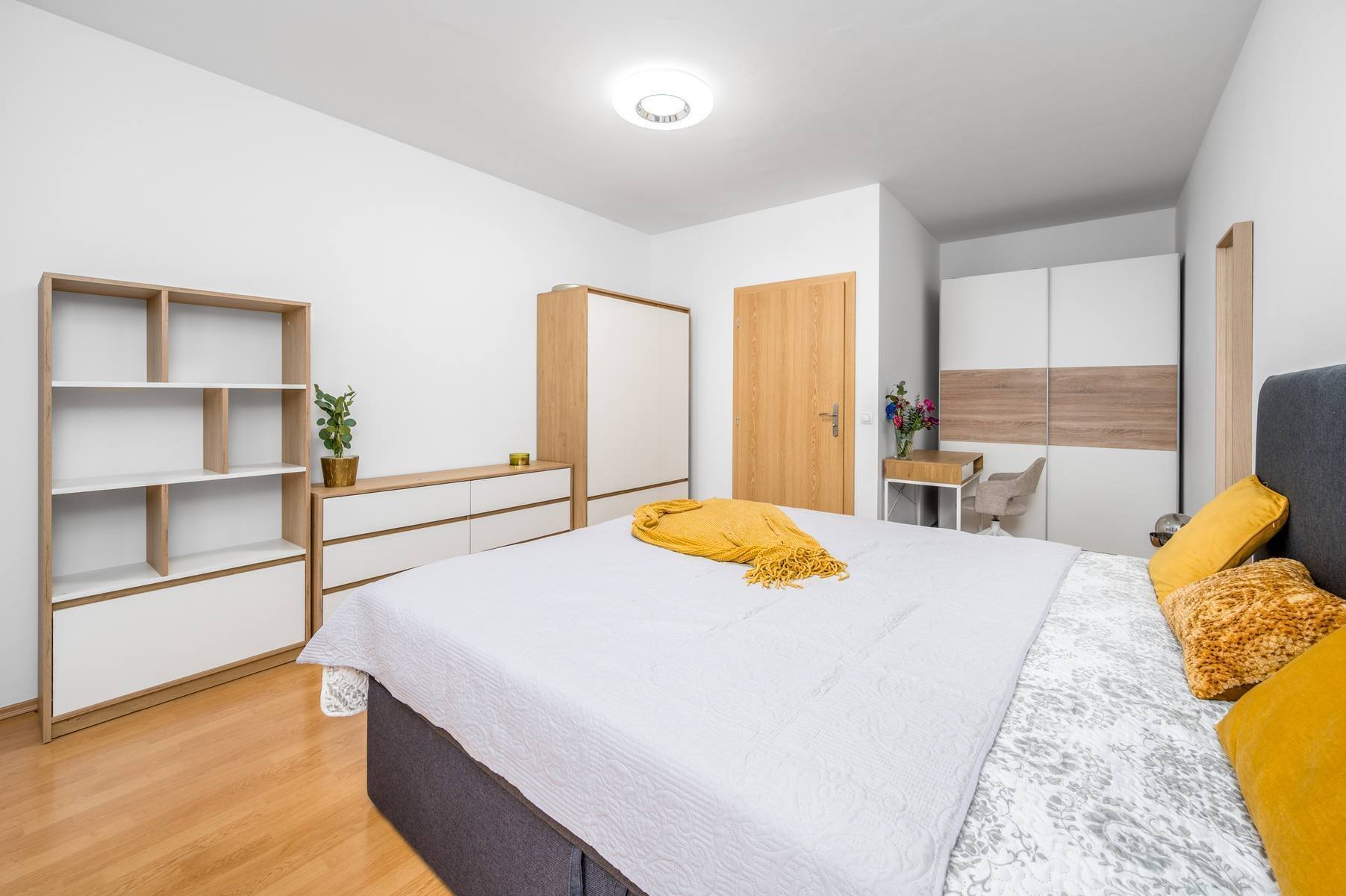 Nabízím k pronájmu krásný mezonetový byt o dispozici 2+kk, obytné ploše 69 m², užitné ploše 82 m², s garážovým stáním a dvěma balkony (13 m²).