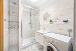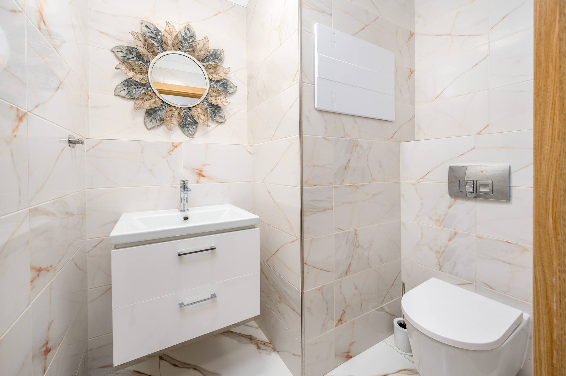 V celém bytě jsou kombinovány plovoucí podlahy a dlažba v moderním provedení.