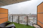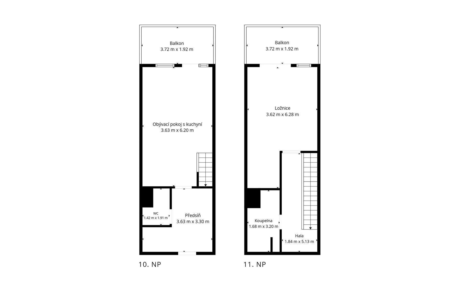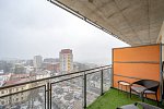 Nachází se v 10. a 11. patře moderní novostavby v ulici Panušková, v Praze 4 – Krč. Horní patro bytu je zároveň poslední, což zajišťuje soukromí a velmi pěkné výhledy napříč Prahou. Díky jihozápadní orientaci je byt po celý den krásně prosvětlený.